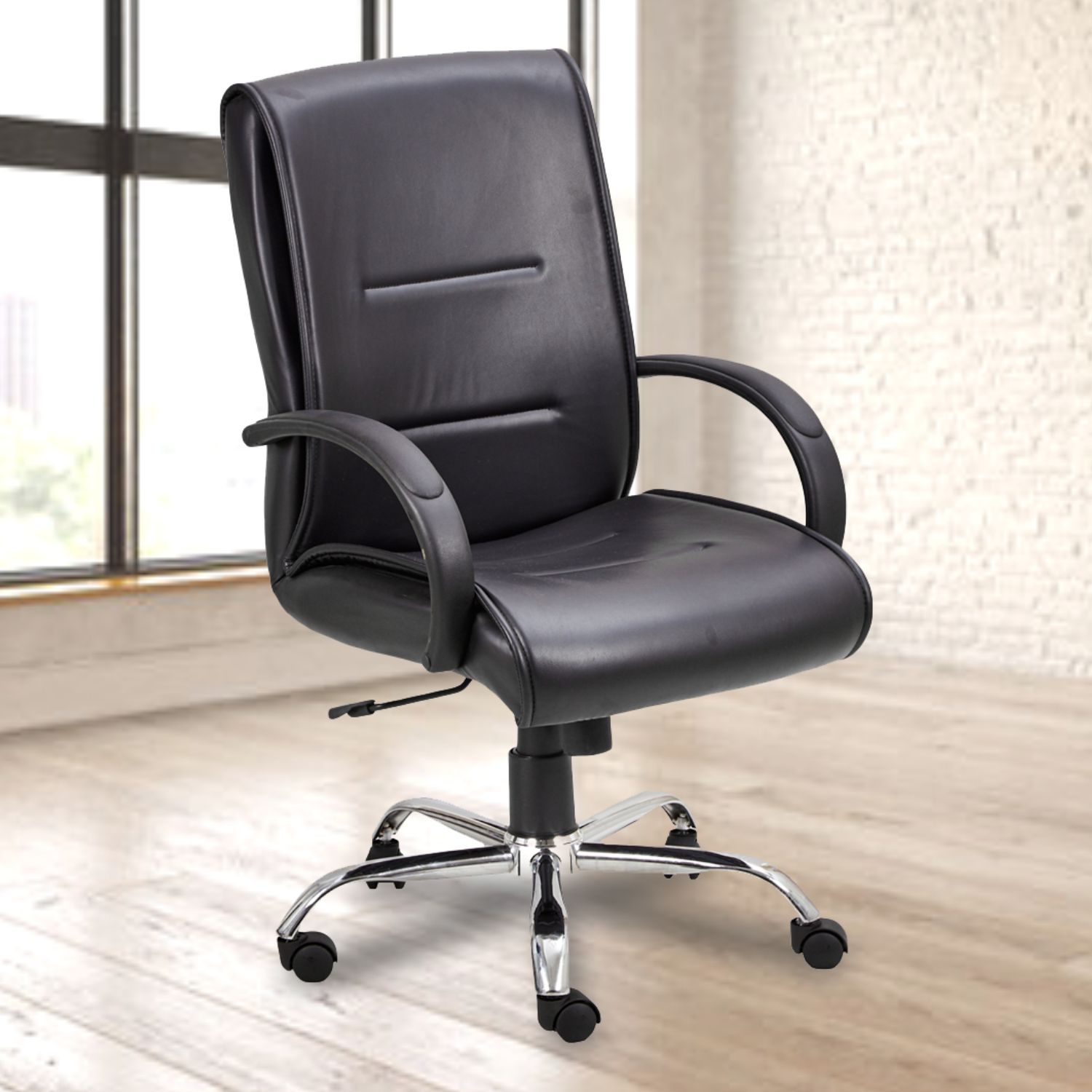 ML-1426-Black Leather Medium Back Office Chair