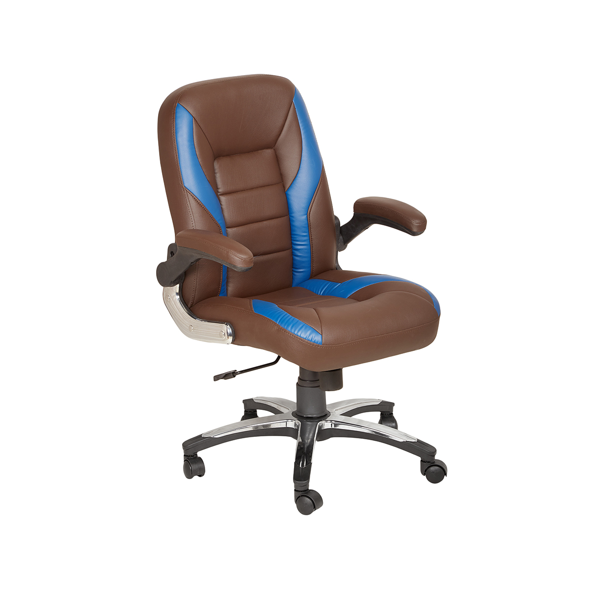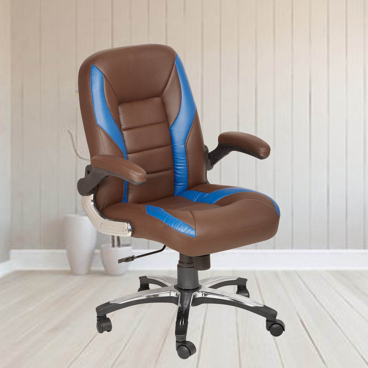 Buy cushioned stylish designer dual brown and blue leather office chair online at the lowest price in India. Huge range of office chairs with unique design & comfort. Get an inquiry now. Its top-notch netback gives a cozy feel and unrivaled completion, while the contact-tilt system offers you various changes. Utilize the armrest or move the seat tallness to assist you with acquiring the most extreme solace. The Poise seat with ergonomic lumbar help adapts to the situation of the difficult undertaking of consolidating plan and capacity.