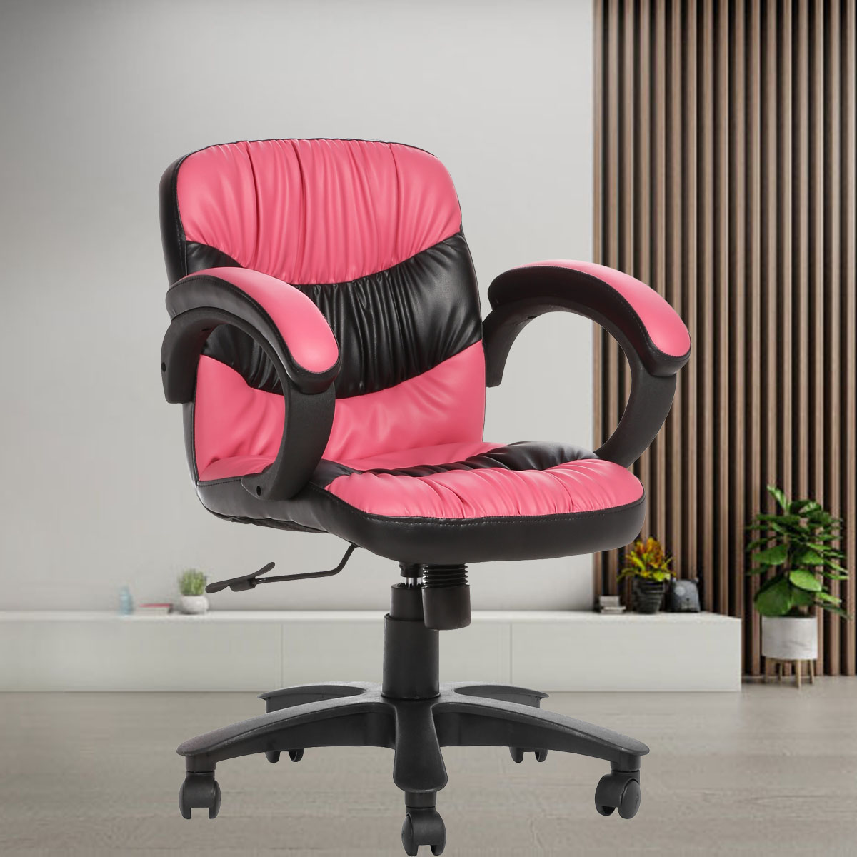 THE SORIENTE LB WORKSTATION CHAIR PINK AND BLACK is the new option for the Manager or CEO. The Executive HB chair comes with a Tilt Mechanism which allows you to lean back into the chair and also help with stretching while sitting for long periods of time. You can adjust the recline of this office chair to your desired angle.